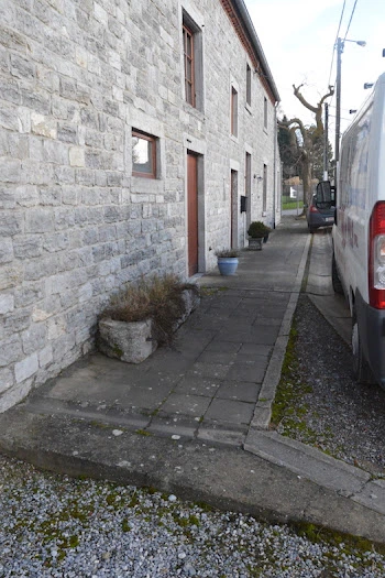 D’anciennes bordures de routes constituent les marches menant à l’entrée.