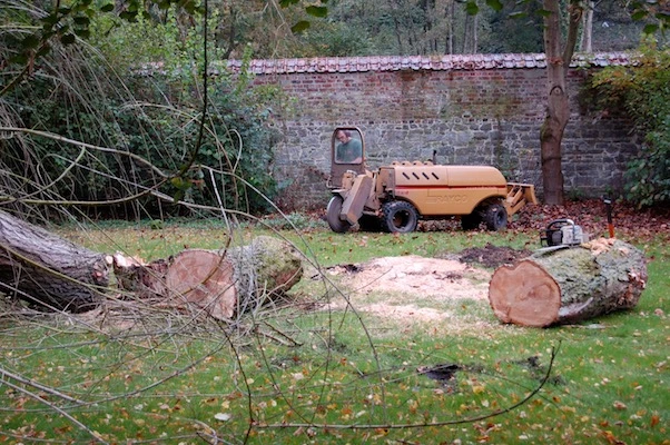 - Abattage d’un saule malade et rognage de la souche